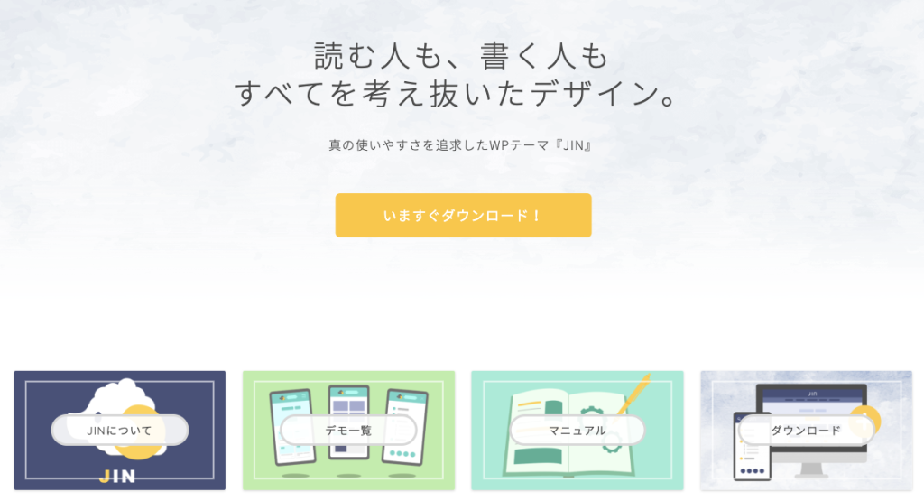 私が最初に選んだ有料テーマはJINでした。デザインの好みとコミュニティの活発さが決め手で、初心者でも使いやすい操作性と、SEO対策が標準装備されている点は実際にありがたかったです。